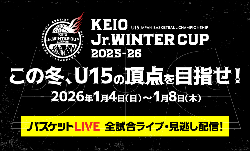 京王 Jr.ウインターカップ2023-24 2023年度 第4回全国U15バスケットボール選手権大会のライブ配信が、下記の内容で予定されています。